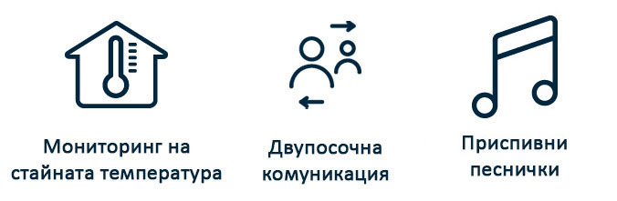 Η αμφίδρομη επικοινωνία σας επιτρέπει να επικοινωνείτε και να ηρεμείτε το μωρό σας από απόσταση, καθώς και να μιλάτε με τον σύντροφο σας όταν είναι στο παιδικό δωμάτιο.