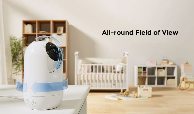 Το οπτικό πεδίο 360 μοιρών παρέχει πανοραμική θέα του μικρού σας παιδιού. Μπορείτε να ρυθμίσετε την κάμερα, οποιαδήποτε στιγμή απευθείας από την οθόνη, χωρίς να ενοχλήσετε το μωρό. Με αυτόν τον τρόπο δεν θα χάσετε ούτε μια γωνιά του δωματίου.