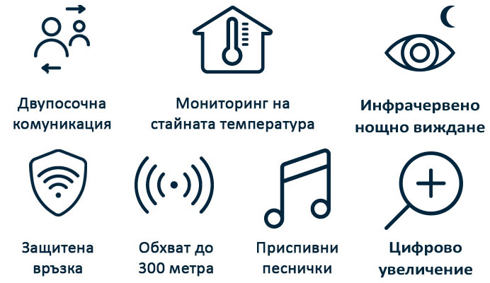 Παρακολουθήστε τη θερμοκρασία δωματίου και μιλήστε με το μωρό σας μέσω της λειτουργίας αμφίδρομης σύνδεσης ήχου. Μείνετε συνδεδεμένοι οπουδήποτε στο σπίτι σας με εμβέλεια έως και 300 μέτρα και μην χάσετε ούτε έναν ήχο χάρη στο εξαιρετικά ευαίσθητο μικρόφωνο.