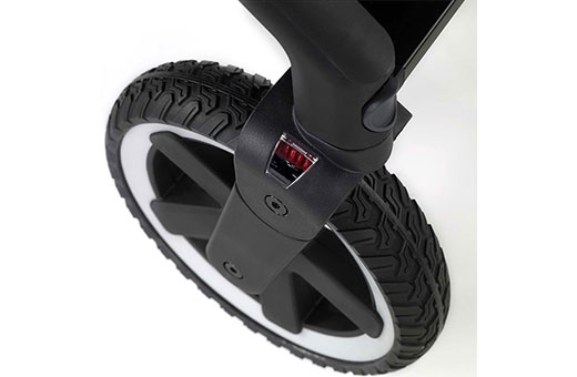 Οι μπροστινοί τροχοί μπορούν επίσης να κινηθούν πλάγια και να κλειδωθούν από πλευρική κίνηση εάν είναι απαραίτητο και ανάλογα με το έδαφος (διάμετρος: Ø20,8 εκατοστά).