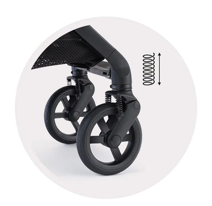 Το μοντέλο διαθέτει ανάρτηση και περιστρεφόμενους μπροστινούς τροχούς, που εξασφαλίζουν ομαλή και ευχάριστη οδήγηση.
