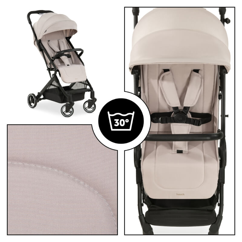 Διπλωμένο, το Travel N Care στέκεται σταθερό ακόμα και μόνο του. Χάρη στη συμπαγή σχεδίαση και την κλειδαριά μεταφοράς που κλείνει αυτόματα, μπορείτε να αποθηκεύσετε το καρότσι Hauck με ασφαλή τρόπο και εξοικονομεί χώρο.