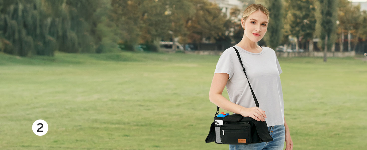 Με την τσάντα οργάνωσης Momcozy, όλα είναι οργανωμένα και σε κοντινή απόσταση - μια πρακτική λύση που κάνει το περπάτημα με το μωρό σας ακόμα πιο άνετο. Με εσωτερικό διαχωριστικό, για καλύτερη οργάνωση, περιλαμβάνει 2 θερμικές θήκες, για ποτήρια και πολλαπλές τσέπες. Όλα έχουν τη θέση τους - τέλος η ακαταστασία!.