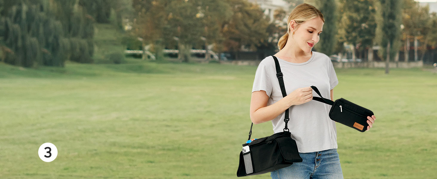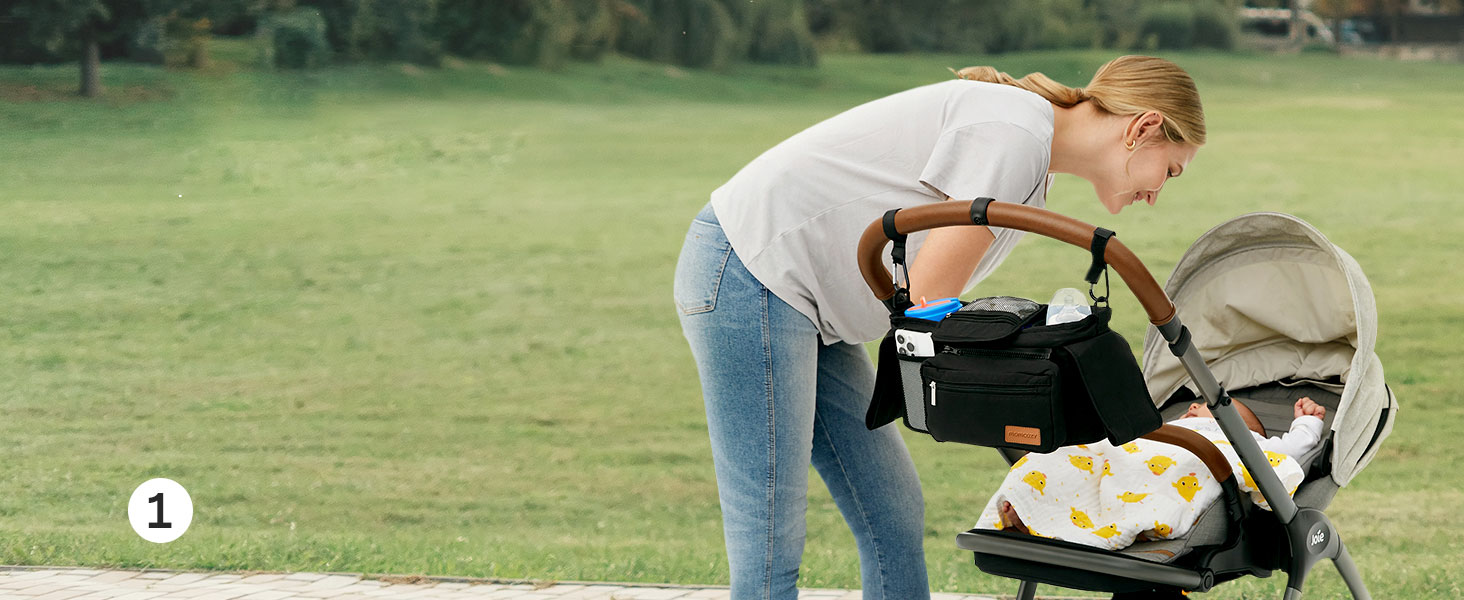 Με μια αποσπώμενη μικρή τσάντα χειρός – πάρτε μαζί σας μόνο τα απαραίτητα. Η τσάντα οργάνωσης, μπορεί εύκολα να αφαιρεθεί από το καρότσι μωρού και να μεταφερθεί ως τσάντα ώμου με τον παρεχόμενο ιμάντα ώμου.