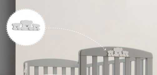 Αξιολάτρευτη διακόσμηση με αρκουδάκια, κατάλληλη για την εξατομίκευση του κεφαλαριού βρεφικού κρεβατιού B.Side. Τοποθετείται εύκολα, χρησιμοποιώντας ισχυρή κολλητική ταινία διπλής όψεως (περιλαμβάνεται).