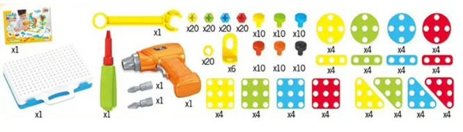 Ένα πολύχρωμο μωσαϊκό με το οποίο το παιδί θα δημιουργήσει κατά βούληση! Το σετ αποτελείται από έναν βαλιτσάκι στον οποίο χωράνε όλα τα τεμάχια και το πάνω μέρος του είναι ένα πεδίο για την τακτοποίηση του μωσαϊκού. Το μωσαϊκό μπορεί να συναρμολογηθεί με το κατσαβίδι εργασίας ή με τα παρεχόμενα εργαλεία (κατσαβίδι, κλειδί).