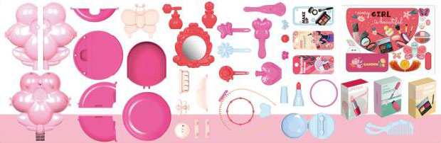 Αποτελείται από 43 τεμάχια, συμπεριλαμβανομένης μιας χτένας, καθρέφτη και μακιγιάζ παιχνιδιών όπως κραγιόν, αρώματα και βερνίκια νυχιών: