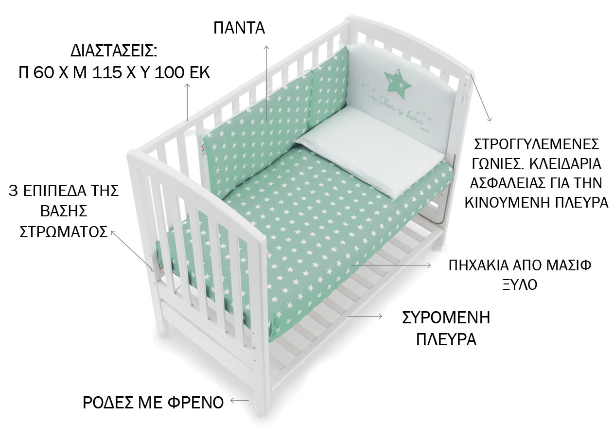 Διαστάσεις κρεβατιού: 60 x 115 x 100 cm
