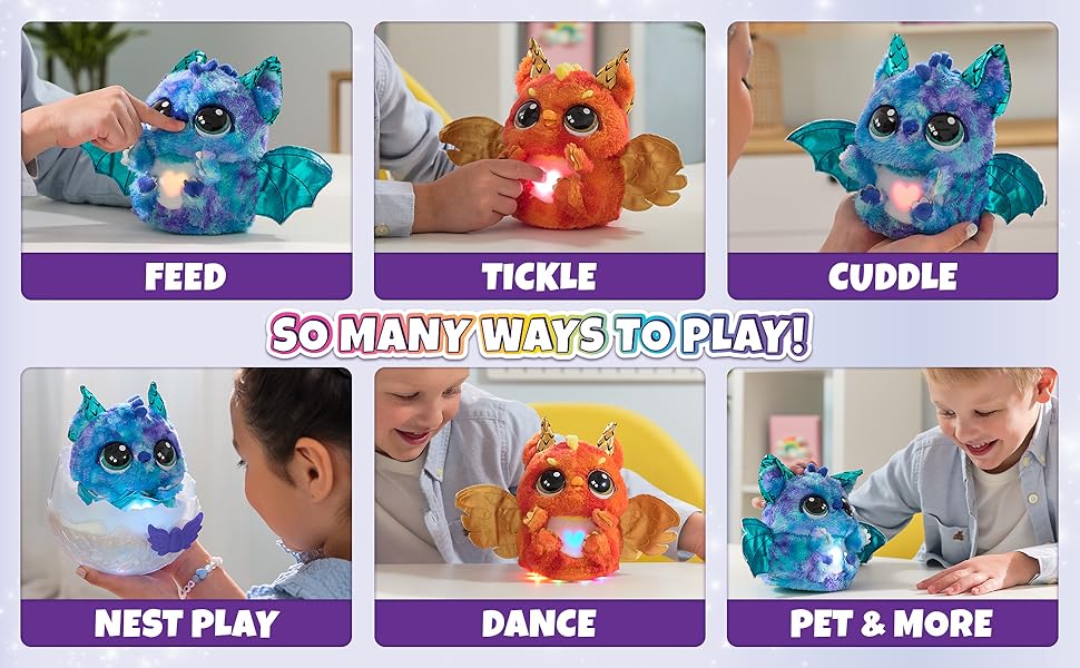 100+ ήχοι και αντιδράσεις: Μιλήστε, γαργαλήστε, τροφοδοτήστε και χορέψτε, με το Hatchimal σας. Μπορεί ακόμη και να κινεί τα φτερά του και να παίζει παιχνίδια όπως το "Peek-a-Boo".