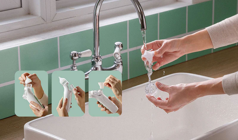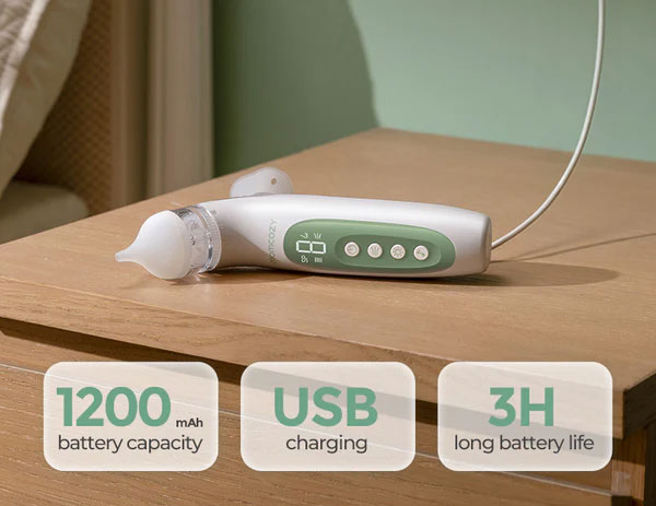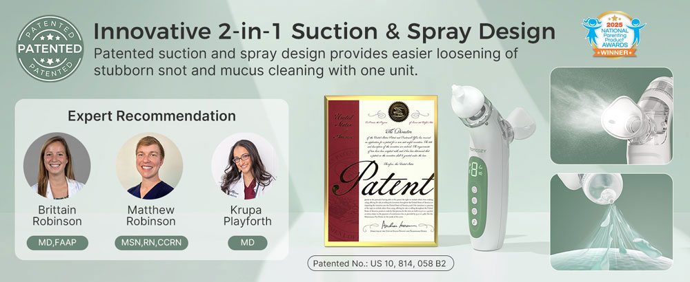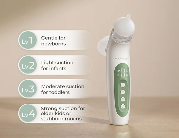 Συνδυάζοντας μια ρινική μάσκα ακριβείας με ένα λεπτό ψεκασμό, ο ηλεκτρικός ρινικός αποφρακτήρας Momcozy 2 σε 1, μαλακώνει γρήγορα τις επίμονες εκκρίσεις και διευκολύνει την αφαίρεσή τους. Σε συνδυασμό με ισχυρή αναρρόφηση έως 65 kPa (νοσοκομειακής ποιότητας), καθαρίζει απαλά και αποτελεσματικά τη μύτη και αποκαθιστά την ελεύθερη αναπνοή σε δευτερόλεπτα.