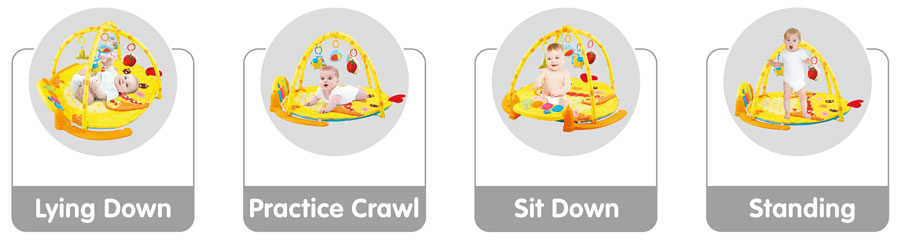 Ενεργή γυμναστική, εξοπλισμένη με πιάνο και ταστιέρα με διασκεδαστικά παιχνίδια. Όταν το παιδί είναι ξαπλωμένο, μπορεί να παίξει πιάνο με τα ποδαράκια του και να διασκεδάσει με τα μουσικά εφέ που παράγει.