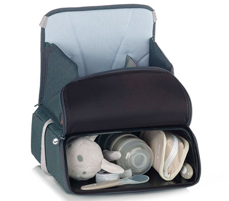 Το φορητό καρεκλάκι φαγητού είναι πραγματικά πρακτικό σε μικρούς χώρους και ειδικά όταν ταξιδεύετε, καθώς έχει επίσης μια μεγάλη εσωτερική θήκη που είναι πολύ χρήσιμη για την αποθήκευση των βρεφικών αντικειμένων.