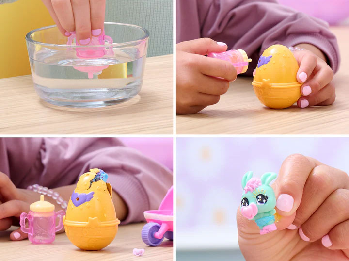 2 αυγά που εκκολάπτονται μόνα τους: Ξεκινήστε την εκκόλαψη, αφαιρώντας τις θηλές, γεμίζοντας το μπιμπερό με νερό και στύβοντας το υγρό μέσα στα αυγά. Σε λίγα δευτερόλεπτα, οι νέοι σας φίλοι θα αρχίσουν να εμφανίζονται!.
