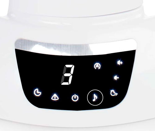 Το λίκνισμα και ο ήχος μπορούν να προγραμματιστούν για 15, 30 και 60 λεπτά.