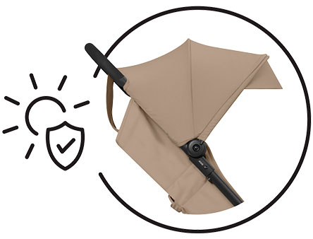 Κρατήστε το παιδί προστατευμένο με το επεκτάσιμο σκίαστρο UPF50+, ενώ οι αεραγωγοί στο backrest το δροσίζουν. Το γείσο, παρέχει πρόσθετη προστασία ακόμη και στις πιο ηλιόλουστες μέρες.