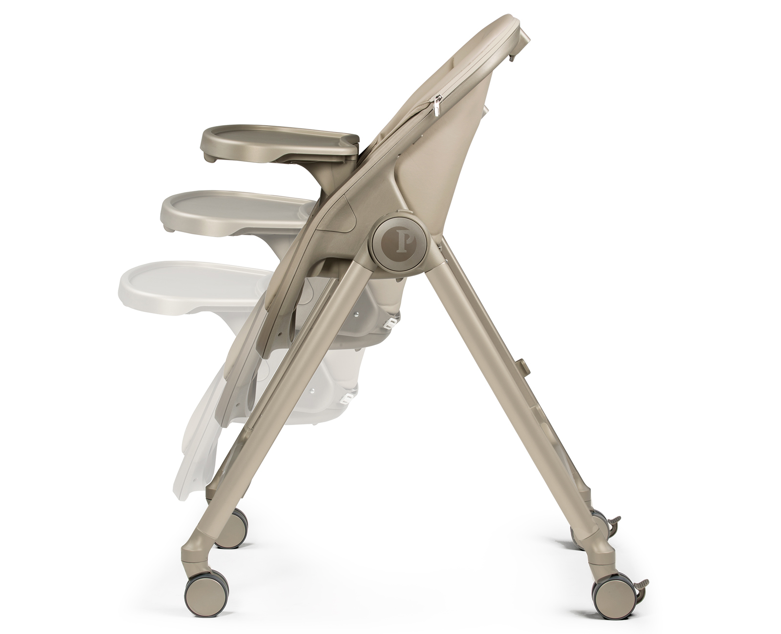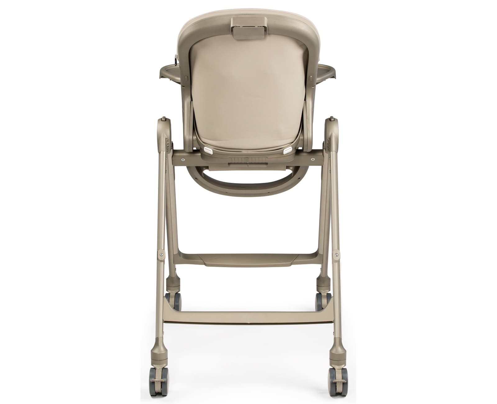 Καινοτόμο σύστημα αναδίπλωσης με κουμπιά στα στοιχεία σύνδεσης. Όταν είναι διπλωμένη, η καρέκλα είναι εξαιρετικά συμπαγής και παραμένει όρθια, ακόμα και όταν ο δίσκος είναι εγκατεστημένος.