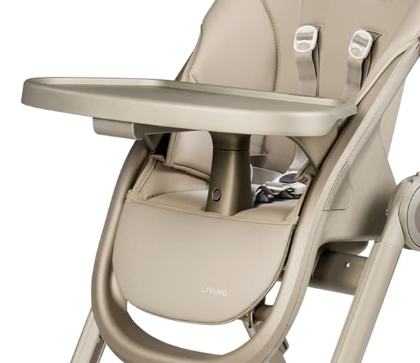 Πλήρως αφαιρούμενη ταπετσαρία από συνθετικό δέρμα με φερμουάρ, για γρήγορο και εύκολο καθάρισμα. Η ζώνη πέντε σημείων καθαρίζεται επίσης εύκολα, διευκολύνοντας την αφαίρεση ψίχουλων και βρωμιάς για εύκολη υγιεινή.