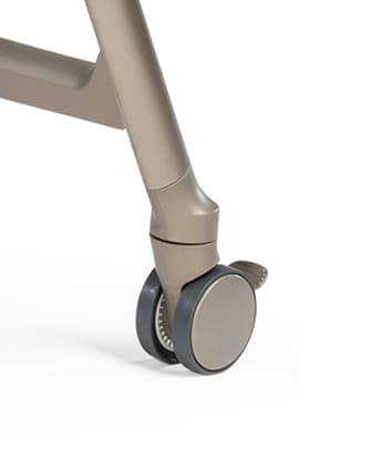 Εξοπλισμένο με 4 μεγάλους περιστρεφόμενους τροχούς με επίστρωση από καουτσούκ, που δεν αφήνουν σημάδια ούτε γρατζουνούν το πάτωμα. Οι πίσω τροχοί διαθέτουν ενσωματωμένο φρένο, για μέγιστη ασφάλεια και σταθερότητα.