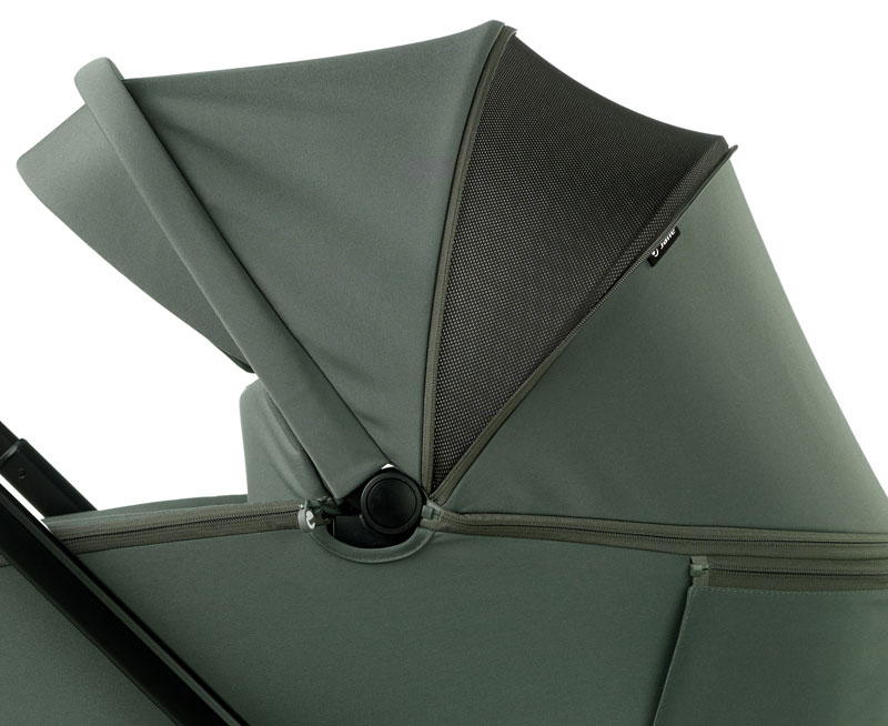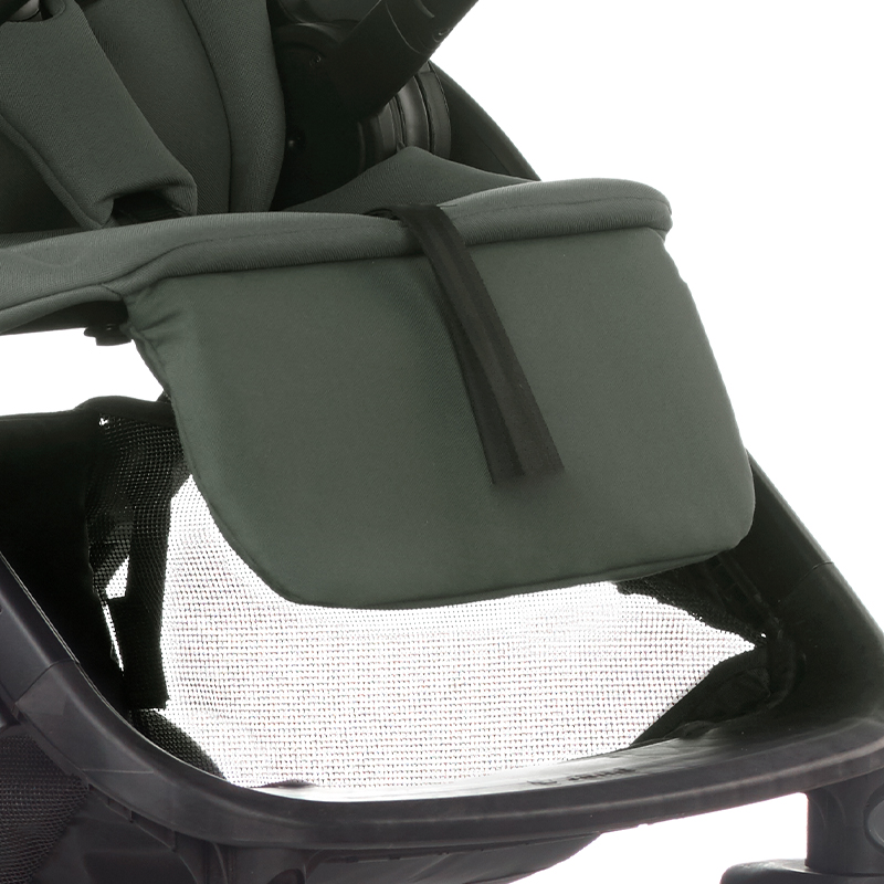 Το καρότσι μωρού, είναι κατασκευασμένο από αναπνεύσιμα υφάσματα, που προστατεύουν από τον αέρα, απωθούν το νερό και παρέχουν προστασία από την υπεριώδη ακτινοβολία UPF 50+.