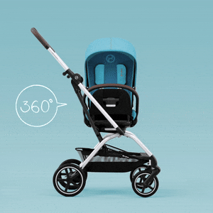 Το κάθισμα και το ενσωματωμένο υποπόδιο περιστρέφονται γρήγορα 360° με το ένα μόνο χέρι προς τη θέση με πρόσωπο προς τον γονέα ή με την κατεύθυνση της κίνησης.