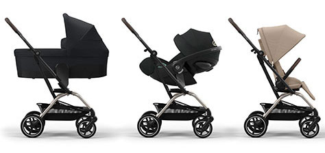 Ένα σασί, τρεις επιλογές ταξιδιού. Εκτός από το κάθισμα καροτσιού, το σασί EEZY S TWIST+2 είναι συμβατό με τα καθίσματα αυτοκινήτου Cybex Group 0+ και το πορτ μπεμπέ για νεογέννητο Cot S.