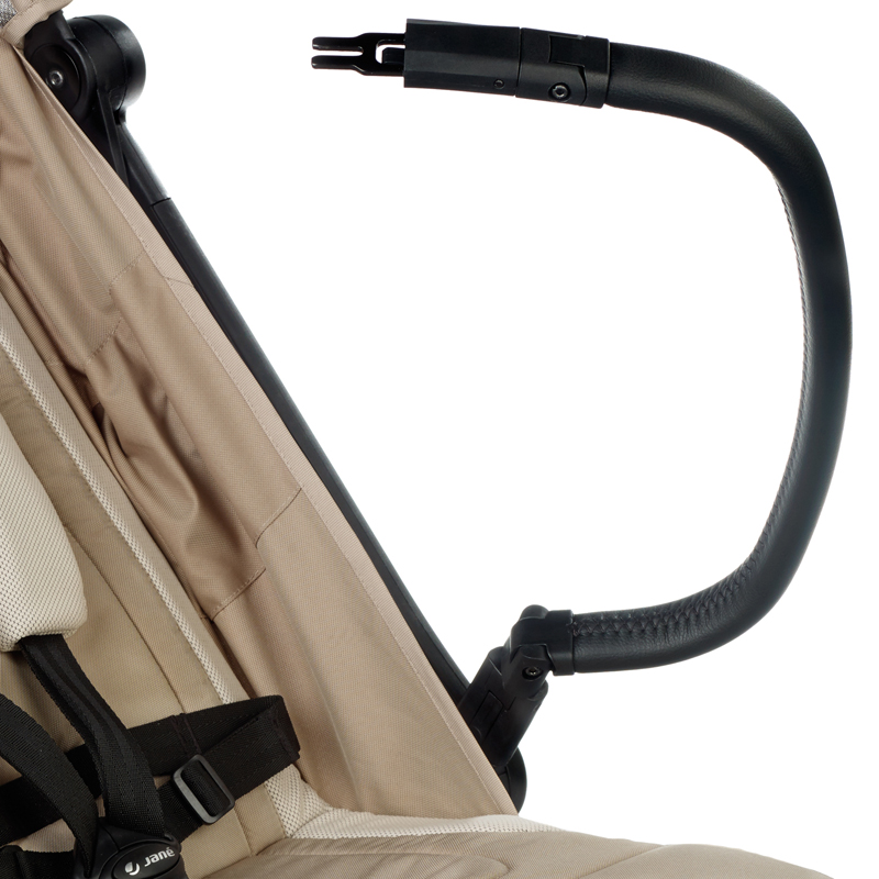 Αφαιρούμενη και ρυθμιζόμενη σανίδα ασφαλείας με τεχνητό δέρμα. Διευκολύνει το να επιβιβάζεται και να αποβιβάζεται το παιδί από το καρότσι.