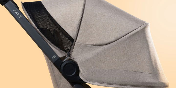 Το καρότσι μωρού Joolz Aer² είναι εξοπλισμένο με ένα μεγάλο σκίαστρο, με ένα επιπλέον πάνελ εξαερισμού. Αυτό παρέχει στο παιδί σας άνεση και προστασία, προστατεύοντάς το από την άμεση έκθεση στον ήλιο.