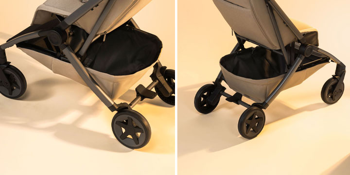 Οι βελτιωμένοι μπροστινοί τροχοί του Joolz Aer² σας βοηθούν να πηγαίνετε οπουδήποτε – από την πρωινή σας βόλτα για καφέ, μέχρι τον απογευματινό υπνάκο του παιδιού σας. Ο εύκολος έλεγχος με το ένα χέρι και η εύκολη ευελιξία, κάνουν την μετακίνηση μια απόλαυση για κάθε γονέα.