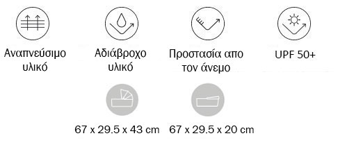 - Προστατεύτικος παράγοντας UPF 50+ στο σκίαστρο.