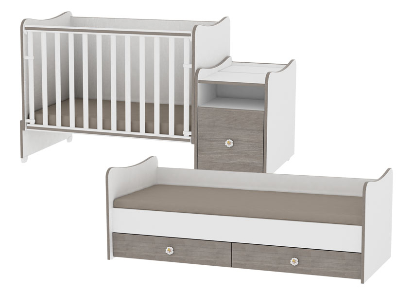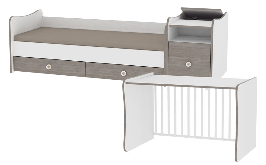 - Βρεφικό κρεβάτι με πολυλειτουργικό ντουλάπι - διαστάσεις: 159 x 71 x 87 εκ