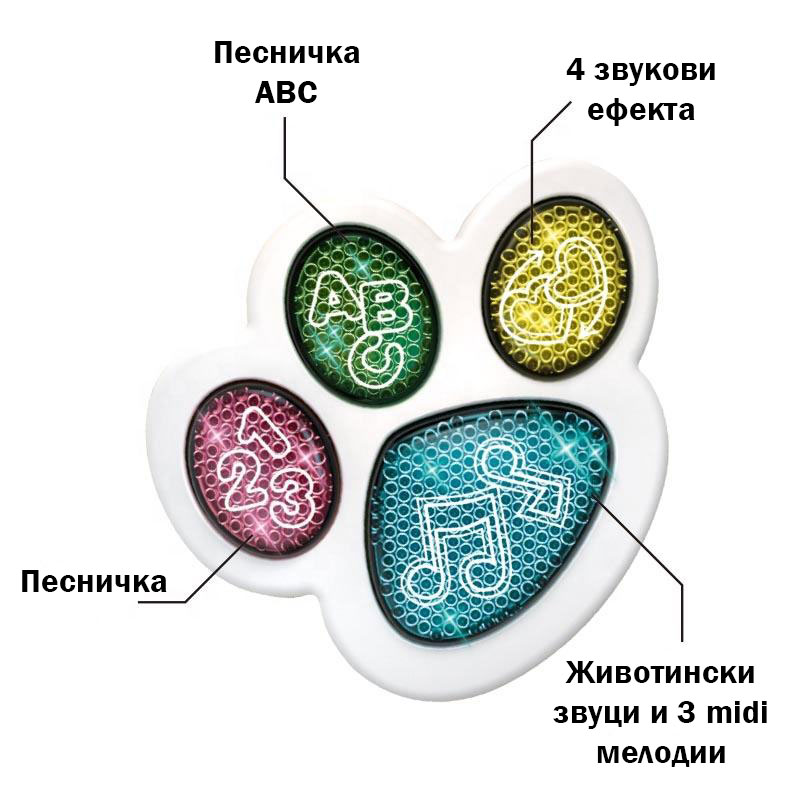 Το ελεφαντάκι διαθέτει ένα πάνελ με 4 φωτιζόμενα κουμπιά: