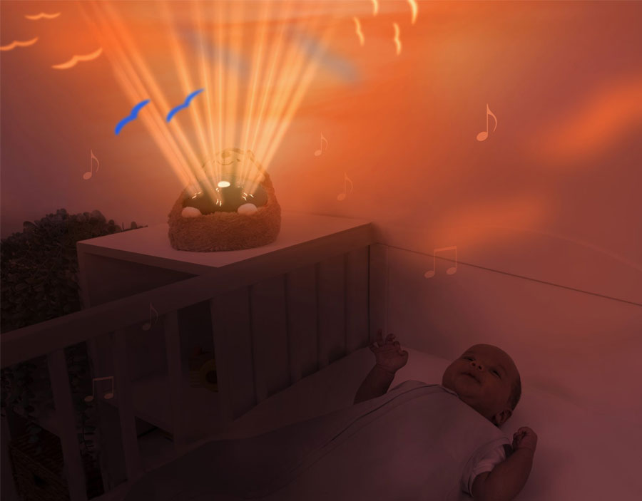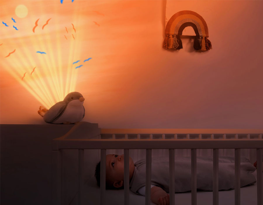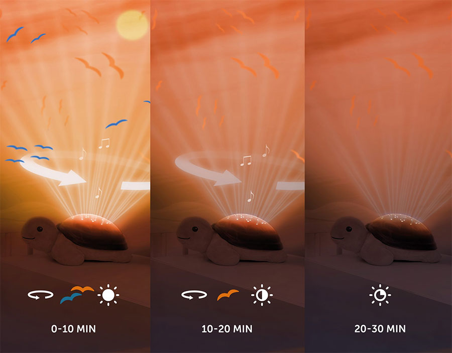Προβάλλει έναν μαγικό πορτοκαλί ουρανό με έναν ήλιο που δύει και πουλιά να πετούν γύρω από το δωμάτιο. Το απαλό πορτοκαλί φως, υποστηρίζει την παραγωγή μελατονίνης, της ορμόνης του ύπνου.