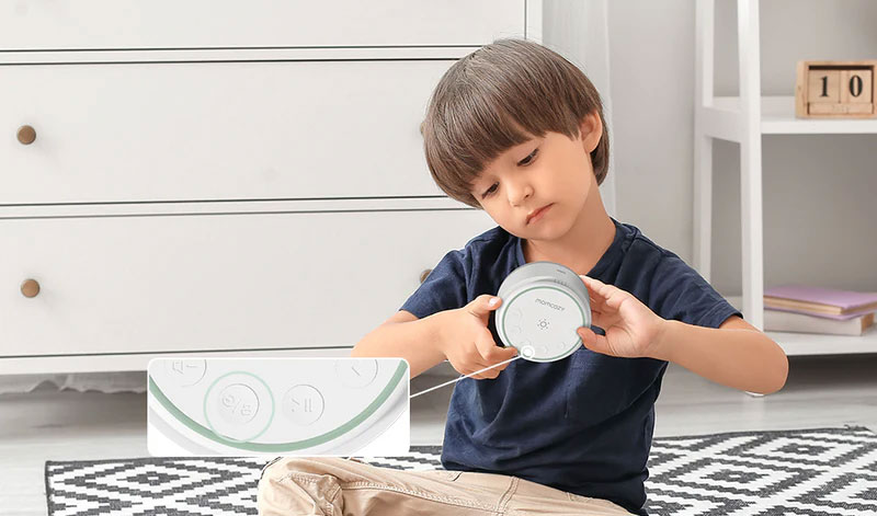 Η συσκευή λευκού θορύβου Momcozy προσφέρει 20 χαλαρωτικούς ήχους, που δημιουργούν την τέλεια ατμόσφαιρα για χαλάρωση και βαθύ ύπνο. Περιλαμβάνει: