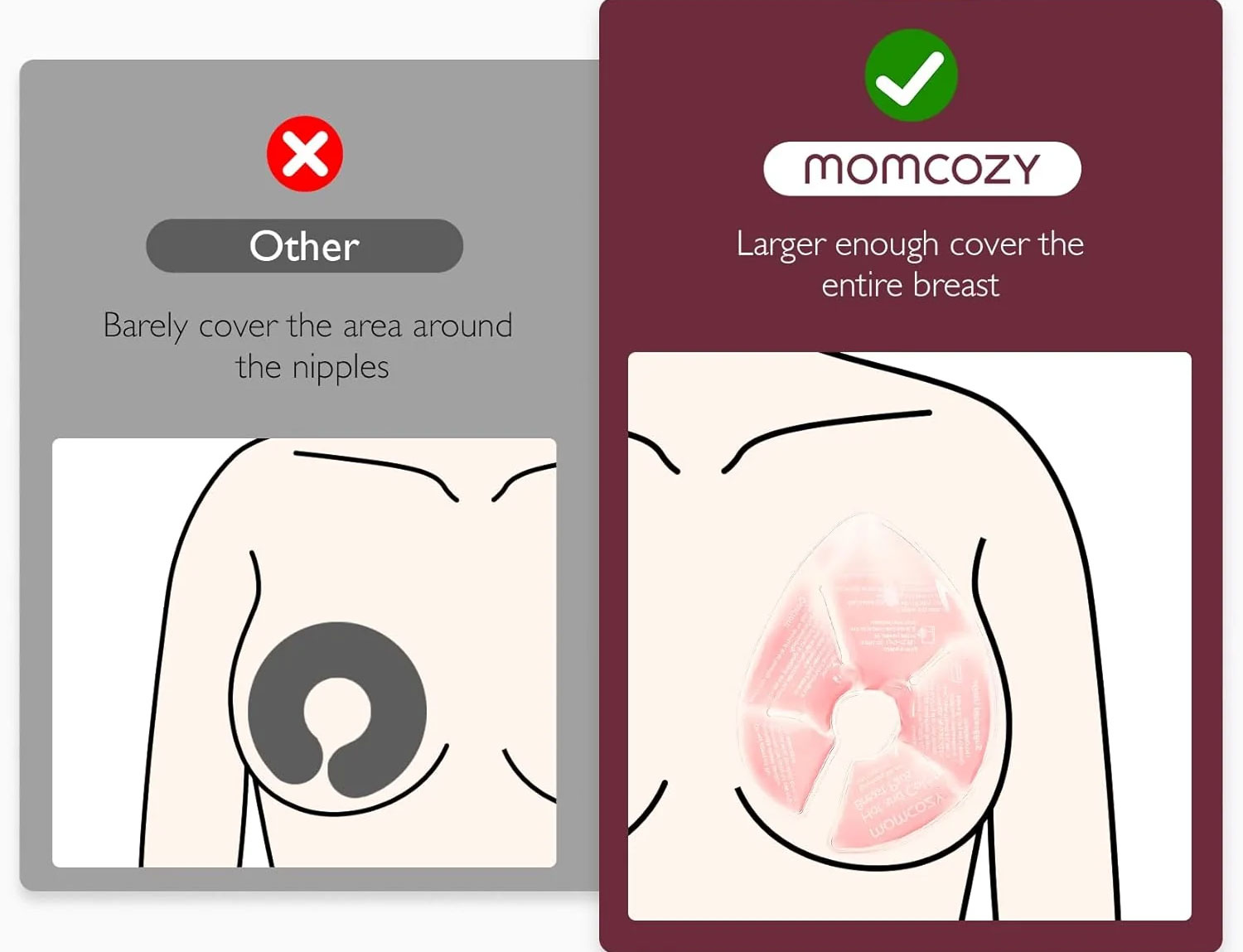 Τα μεγάλα επαναχρησιμοποιούμενα επιθέματα ψύξης και θέρμανσης της Momcozy, έχουν σχεδιαστεί για να ανακουφίζουν κοινές προκλήσεις θηλασμού, όπως πόνο, πρήξιμο, φραγμένους πόρους και φουσκωμένα στήθη.