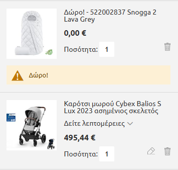 Δείτε πώς φαίνεται ένα προϊόν με δώρο στο καλάθι σας: