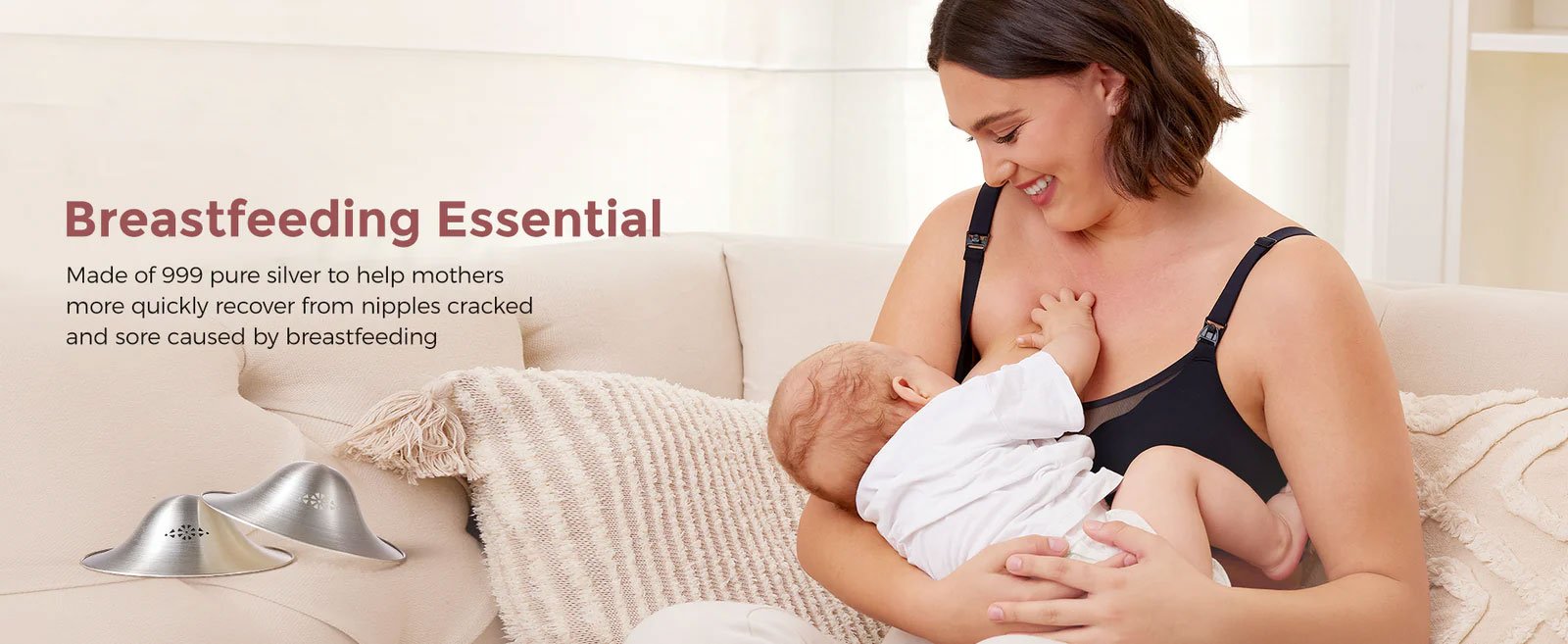 Οι προστατευτικές ασημένιες θηλές, βοηθούν στην επούλωση των σκασμένων και ερεθισμένων θηλών – ένα συνηθισμένο πρόβλημα στον πρώιμο θηλασμό.
