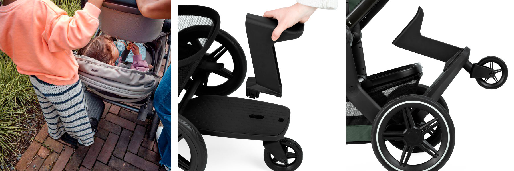 Βόλτα με ένα μωρό και ένα μεγαλύτερο παιδί – στερεώστε εύκολα τη σανίδα στο καρότσι μωρού και απολαύστε τη βόλτα μαζί.