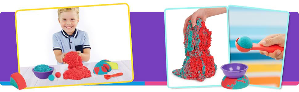 680 γραμμάρια, κινητική άμμος και 3 εργαλεία: Χρησιμοποιήστε την κινητική άμμο και τα εργαλεία που περιλαμβάνονται για να δημιουργήσετε εντυπωσιακά εφέ άμμου. Πειραματιστείτε με το μπολ, το μαχαίρι και το κουτάλι καθώς πυροδοτεί τη δημιουργικότητά σας.