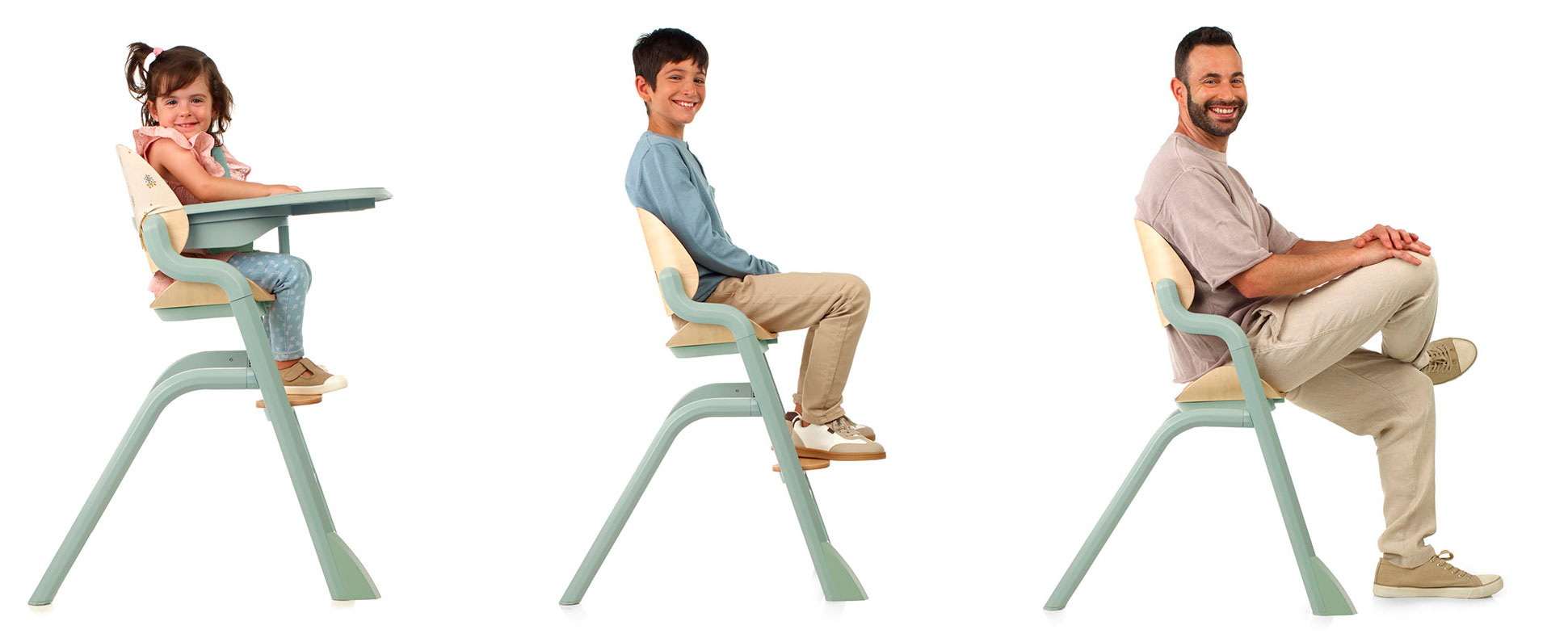Με τον κομψό σχεδιασμό της από ξύλο οξιάς, το καρεκλάκι μετατρέπεται εύκολα – πρώτα σε μια άνετη παιδική καρέκλα φαγητού και στη συνέχεια σε μια κομψή καρέκλα ενηλίκων.