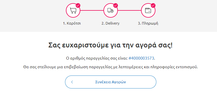 Μετά την επιτυχή ολοκλήρωση της παραγγελίας, θα δείτε αυτό στην οθόνη: