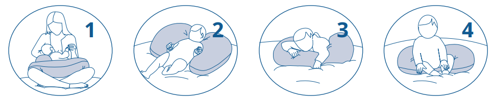 Θέση 4 - συνιστάται όταν το μωρό μπορεί να κάθεται μόνο του, για να αυξήσει τη σταθερότητά του. Το μαξιλάρι θα προστατεύσει το παιδί και θα του δώσει σταθερότητα, όταν μάθει να κάθεται μόνο του.