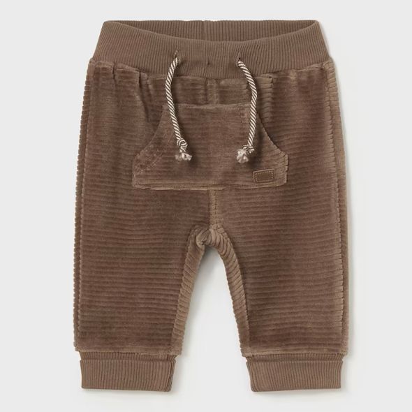 Βρεφικό μακρύ παντελόνι της Mayoral, από απαλό και άνετο κοτλέ σε χρώμα μόκα. Το παντελόνι διαθέτει ελαστική ζώνη, για μέγιστη άνεση και ρυθμιζόμενα κορδόνια περίσφιξης που προσθέτουν μια κομψή προφορά. Είναι επιπλέον εξοπλισμένο με μπροστινή τσέπη σε στυλ καγκουρό, που του δίνει μια μοντέρνα και πρακτική εμφάνιση. Οι μανσέτες στα πόδια είναι ελαστικές, εξασφαλίζοντας τέλεια εφαρμογή. Αυτό το παντελόνι αποτελεί ιδανική επιλογή για τη σεζόν φθινόπωρο-χειμώνα, συνδυάζοντας ζεστασιά και στυλ. Κατάλληλο για καθημερινή χρήση και εύκολο να συνδυαστεί με διάφορα εξωτερικά ρούχα.