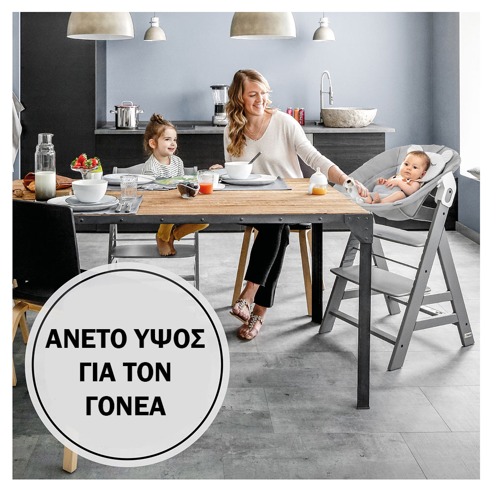 Κρατώντας το μωρό σας στο επίπεδό σας χρησιμοποιώντας το μοντέλο ως μονάδα στην καρέκλα Alpha+, είναι πολύ πιο εύκολο να ταΐσετε, να ανακουφίσετε ή να παίξετε χωρίς να χρειάζεται να σηκώνεστε συνεχώς και να σκύβετε.